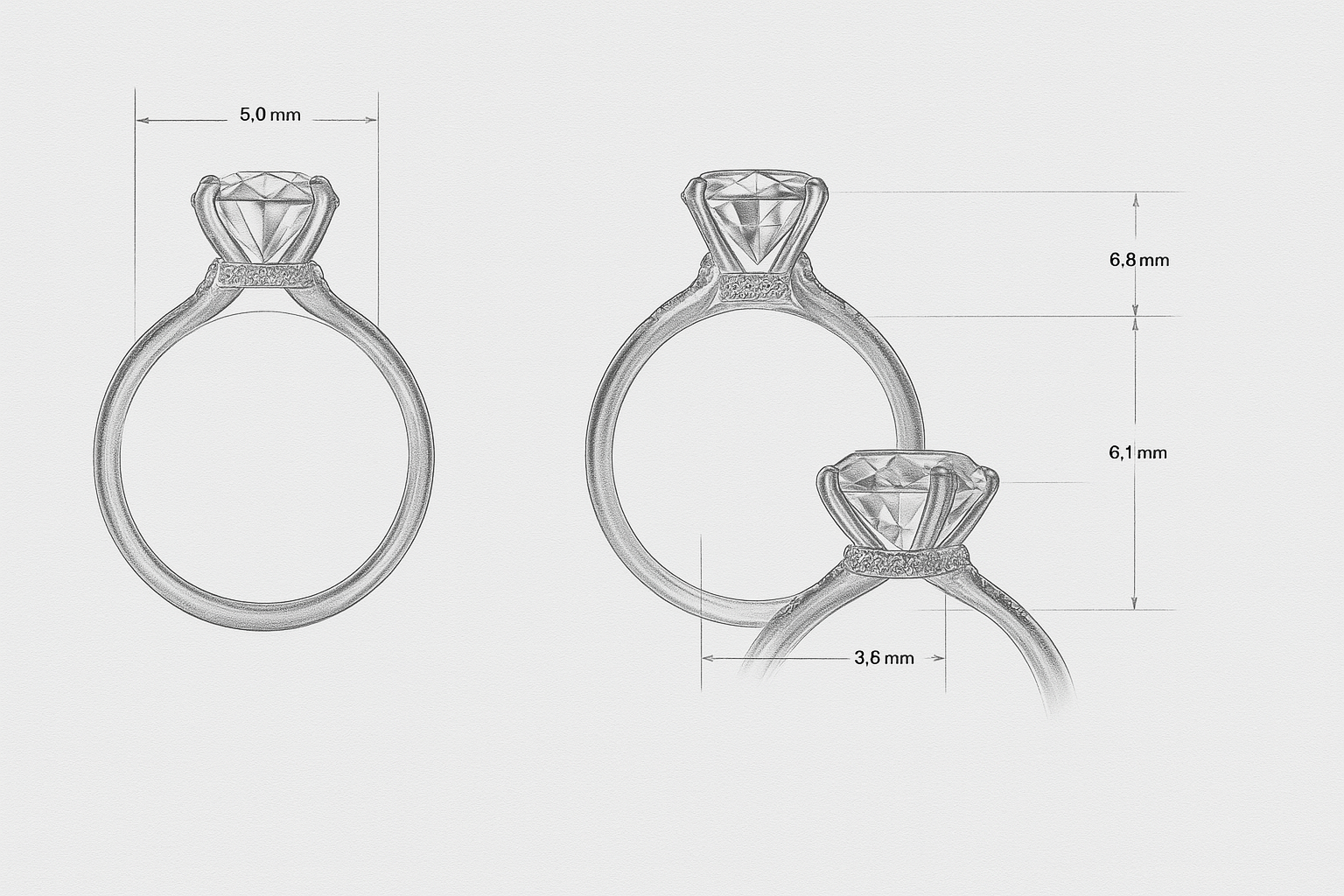 Diseñamos la base con precisión milimétrica para que los diamantes del halo oculto calcen perfectamente, sin alterar la altura ni la comodidad del anillo.