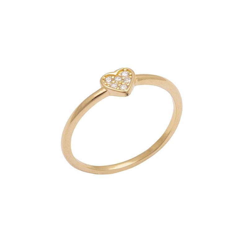 Anillo de plata con detalle en forma de corazon con 6 puntos de zirconia. Disponible en baño de oro amarillo y oro rosa de 24k.