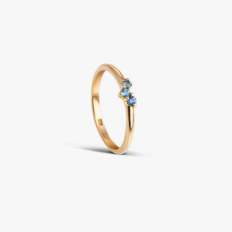 Anillo de oro amarillo 18k con 3 aguamarina.