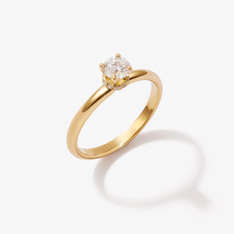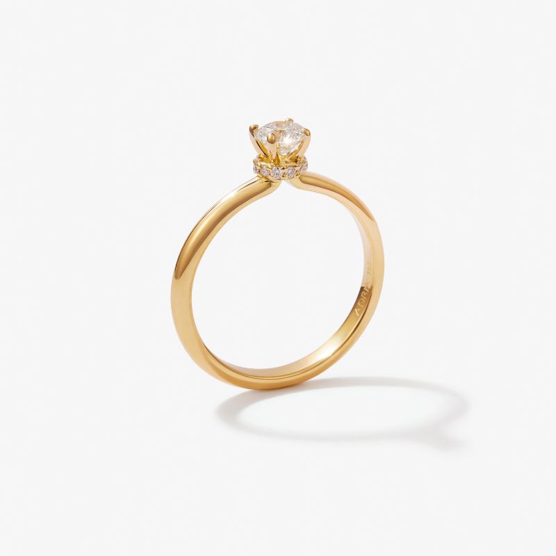 Anillo de Compromiso en oro amarillo 18K modelo hidden halo con diamante GIA de 0.35 ct.