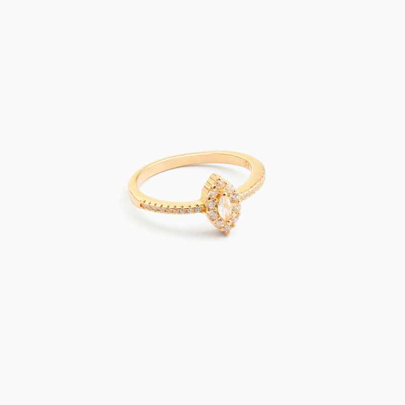 Anillo de plata 925 con circonitas en forma de hoja. Disponible en baño de oro amarillo de 24k de una micra.