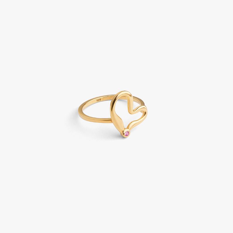 Anillo de plata 925 modelo corazón calado con moissanita/ zafiro rosa 1.5mm. Disponible en plata y bañado en oro de 24k.