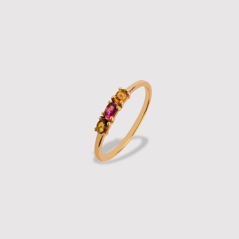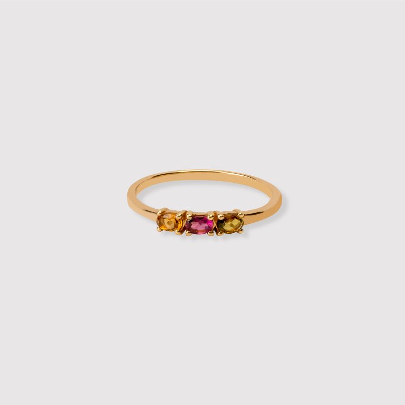 Anillo plata 925 con piedras turmalinas multicolor. Disponible plata bañado en oro amarillo. Colores varían según disponibilidad.