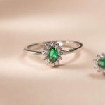 Anillo con roseta central con circones pequeños alrededor. Colección Rainbow de Adria Joyas.