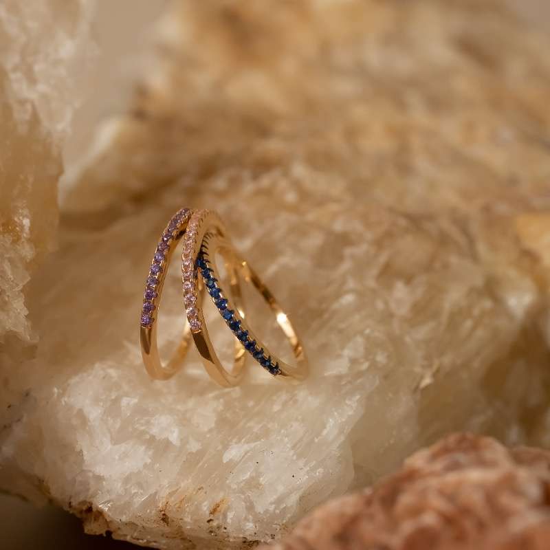Anillo de plata 925 de banda con circones disponible en plata, oro amarillo y oro rosado.