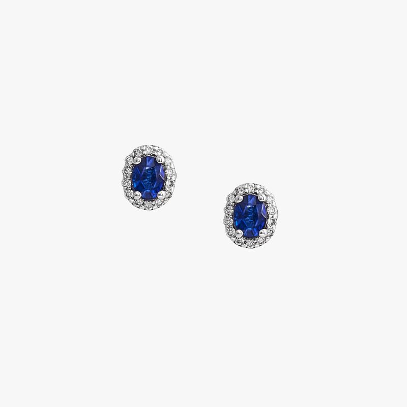 Aretes de oro blanco 18k con diamantes y zafiro en forma de oval . Pieza única.