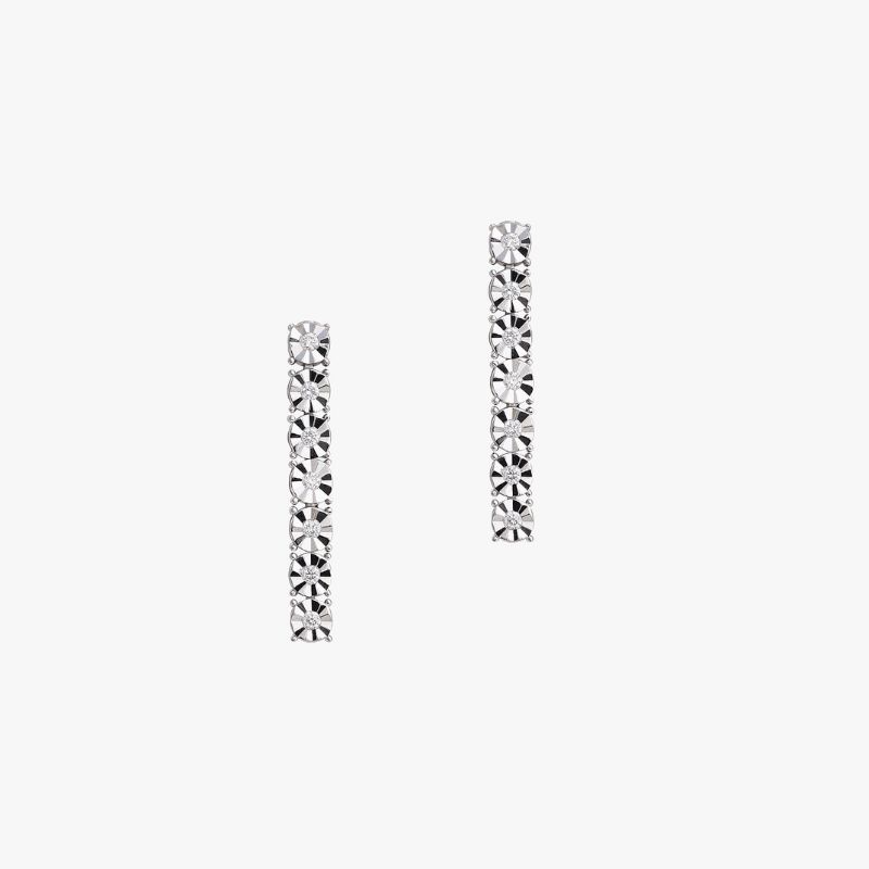 Aretes de oro blanco 18k modelo colgante con diamantes.