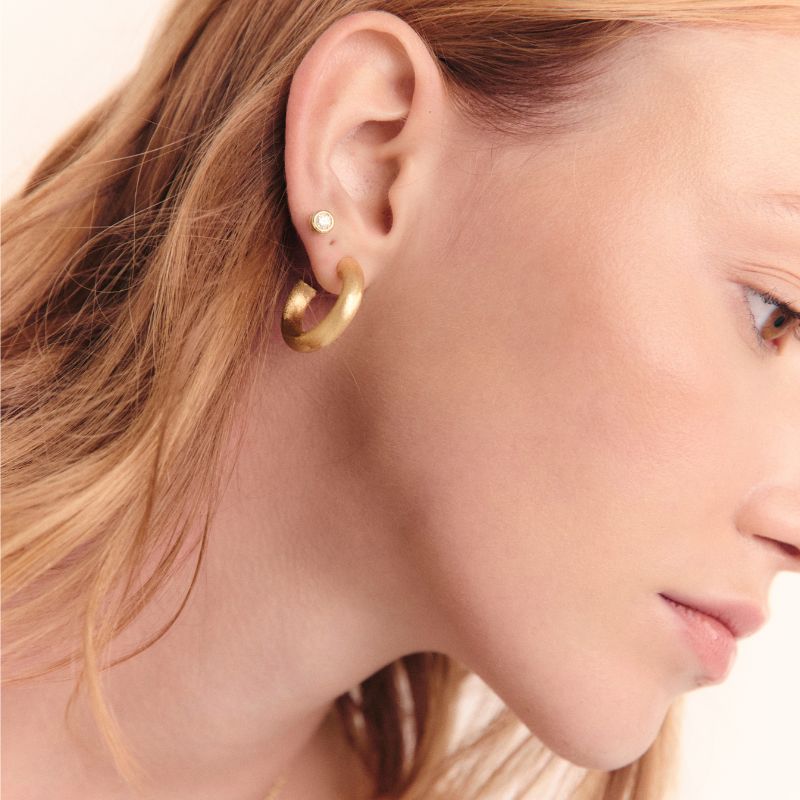 Argollas de plata 925 satinada. Disponible en plata y bañado en oro.2.5cm, diametro 1.5cm.