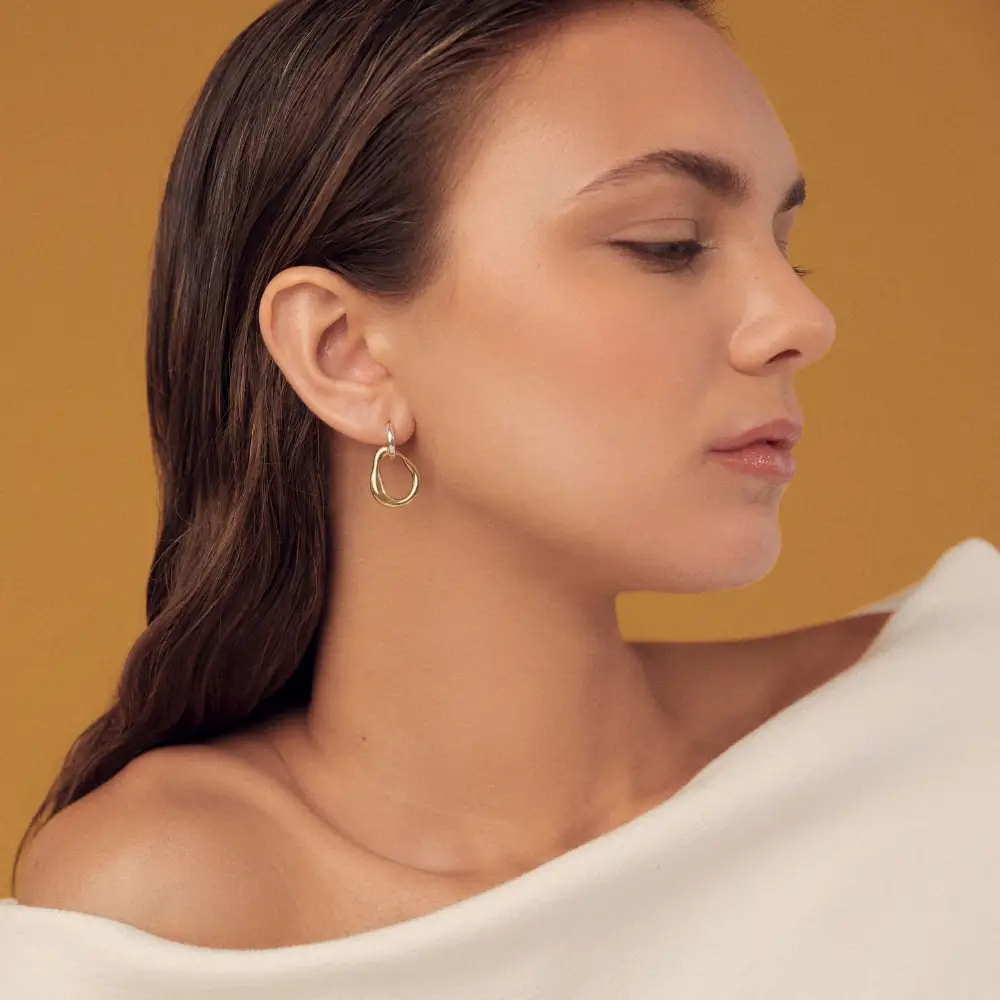 Aretes de mix de plata y plata bañado en oro de 24k.