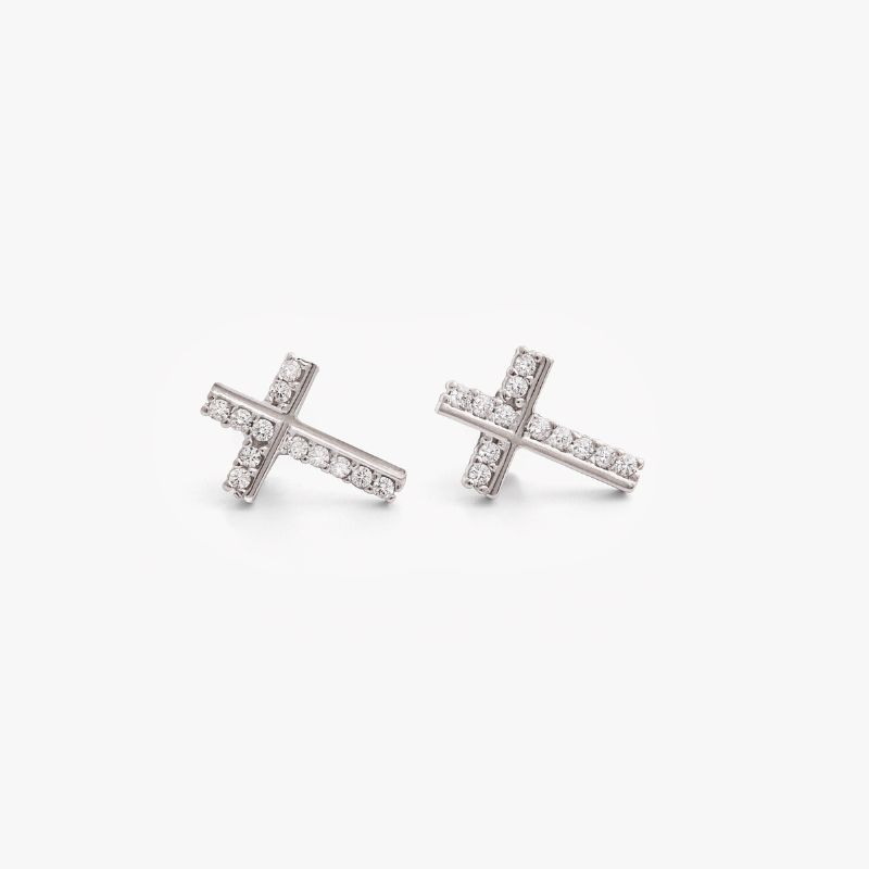 Aretes de plata 925 cruz con zircones.
