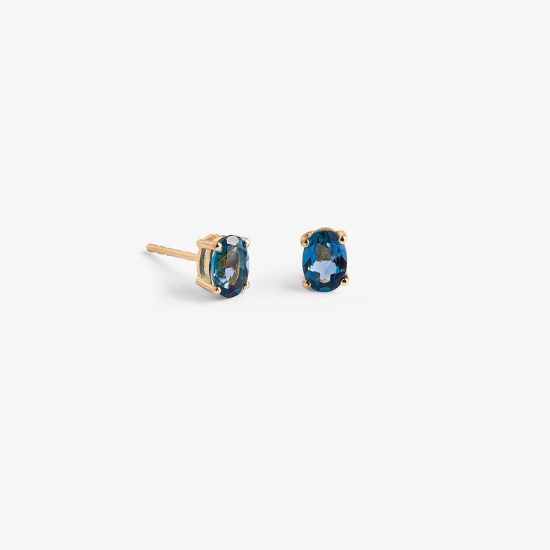 Aretes de plata 925 con topacio en forma de oval. Disponible en plata y plata bañado en oro. Medida: 6x5mm.