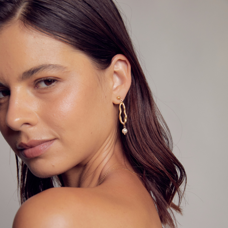 Aretes de plata 925 con perla colgante. Disponible en plata y plata bañado en oro.