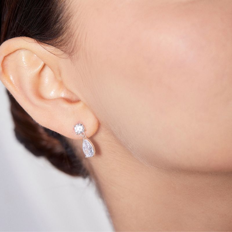 Aretes de plata 925 con moissanita. Disponible en plata y bañado en oro 24k. Shop online en adriajoyas.com.