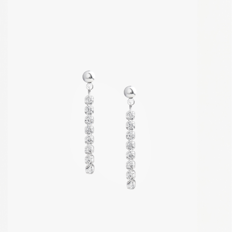 Aretes de plata 925 con zirconias colgantes. Disponible en plata y plata bañado en oro amarillo.
