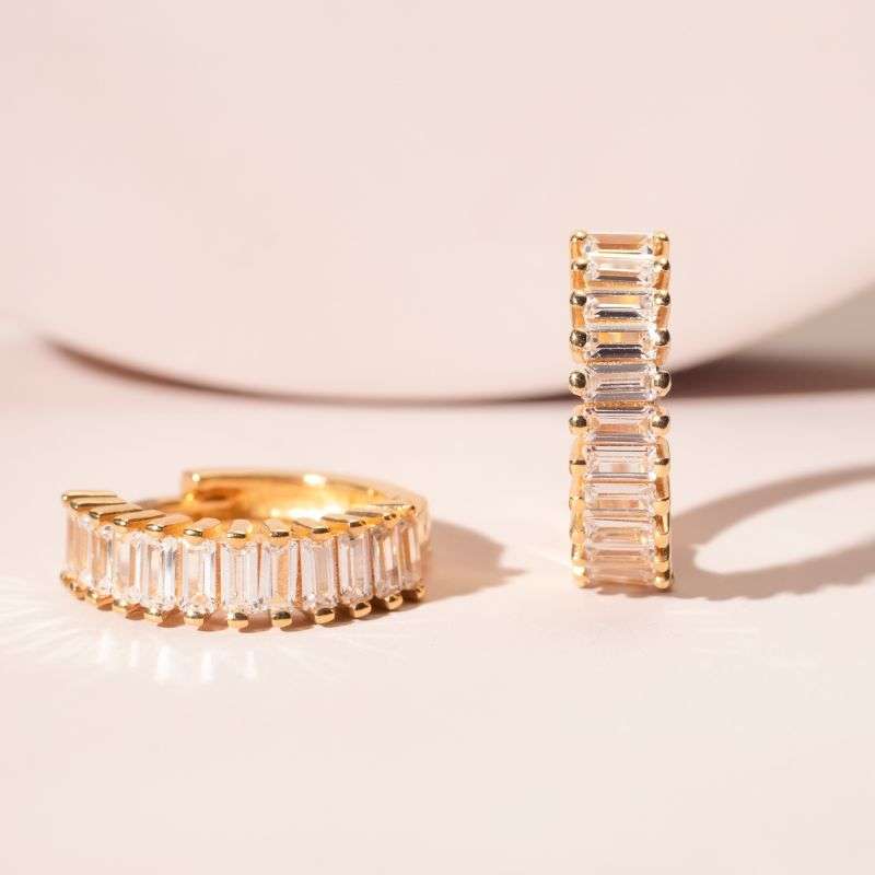 925 silver earring with rectangular zircons. Available in vermeil silver plated in 24k yelow gold. Shop online at adriajoyas.com