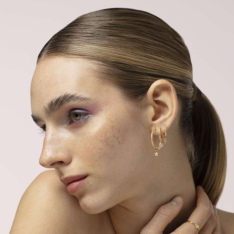 Argollas de plata 925 con zirconias bañado en oro 24k con 4 charms para combinarlos como desees.