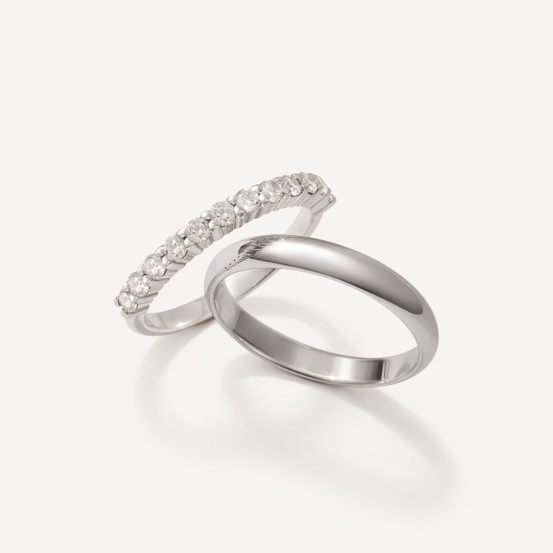 Aros de matrimonio con acabado liso 4m y  cintillo con 12 diamantes de 2 puntos. Disponible en oro blanco 18k, oro amarillo 18k y oro rosa 18k.