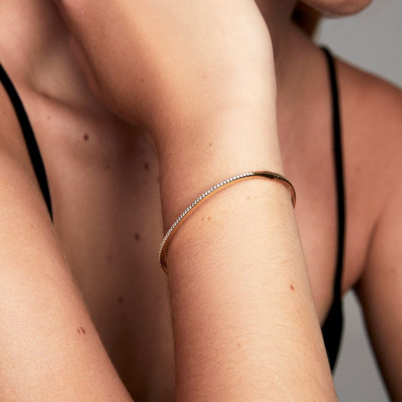 Bangle de oro amarillo con diamantes a la mitad . Pieza única.