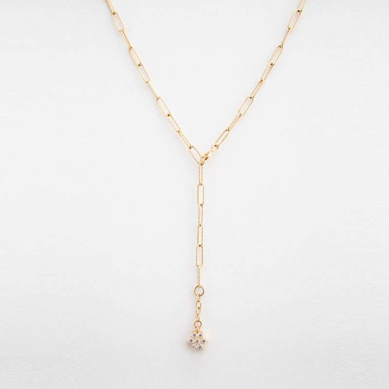 Cadena de plata 925 de eslabones mitad lisos y mitad diamantados con roseta de circonitas.