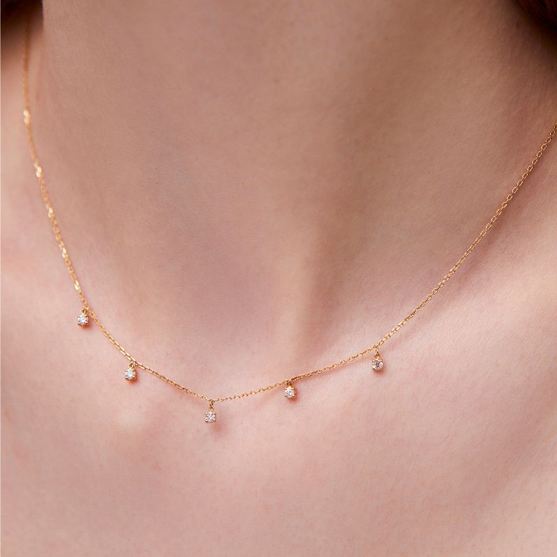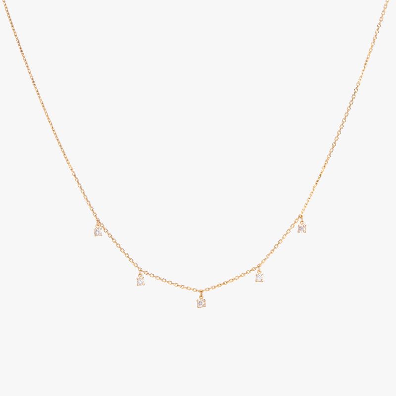 Collar de oro amarillo 18k con 5 diamantes naturales colgando.