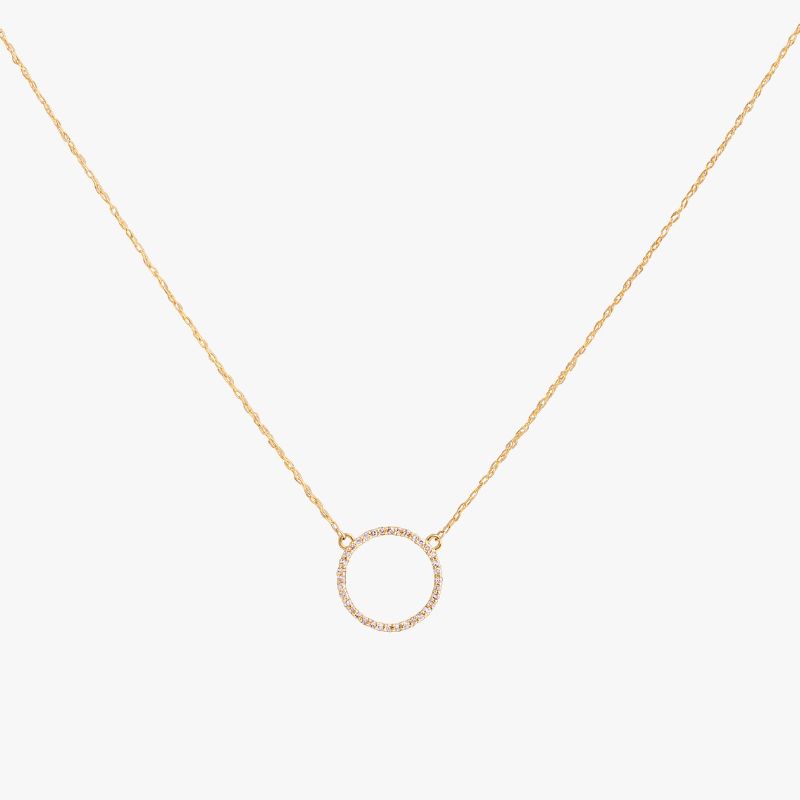 Collar de oro amarillo 18k modelo círculo de la vida con diamantes.