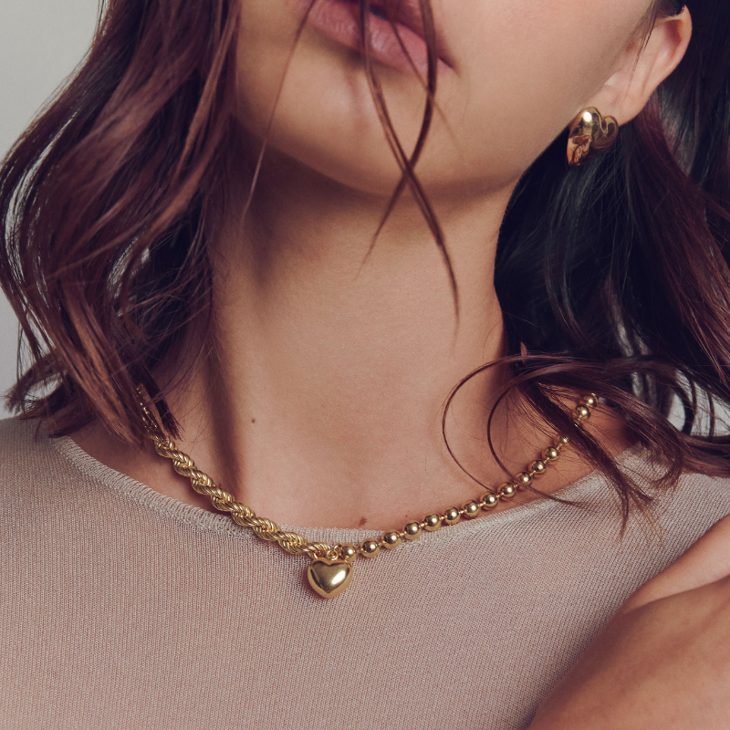 Collar de plata 925 mitad cordón y mitad bolas con dije de corazón liso. Disponible en plata y plata bañado en oro amarillo.