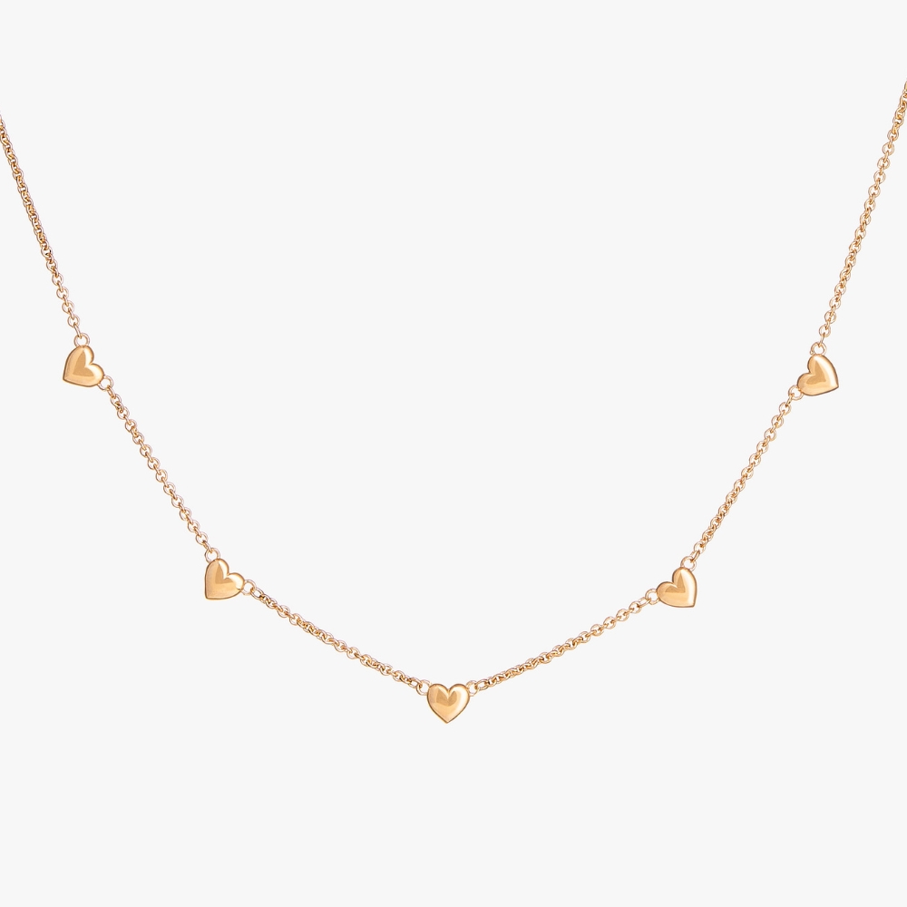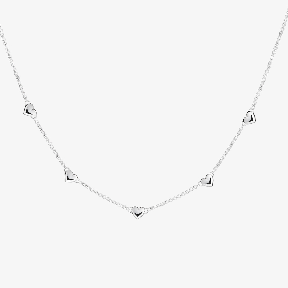 Collar de plata con corazones bombeados.