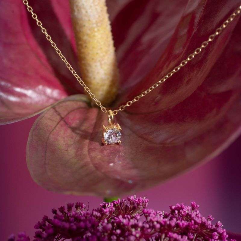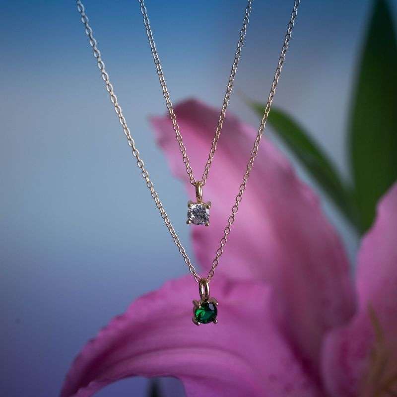 Collar de plata 925 con zircón de 5mm y cadena de 40cm con extensión de 5cm. Disponible en plata y plata bañado en oro amarillo.