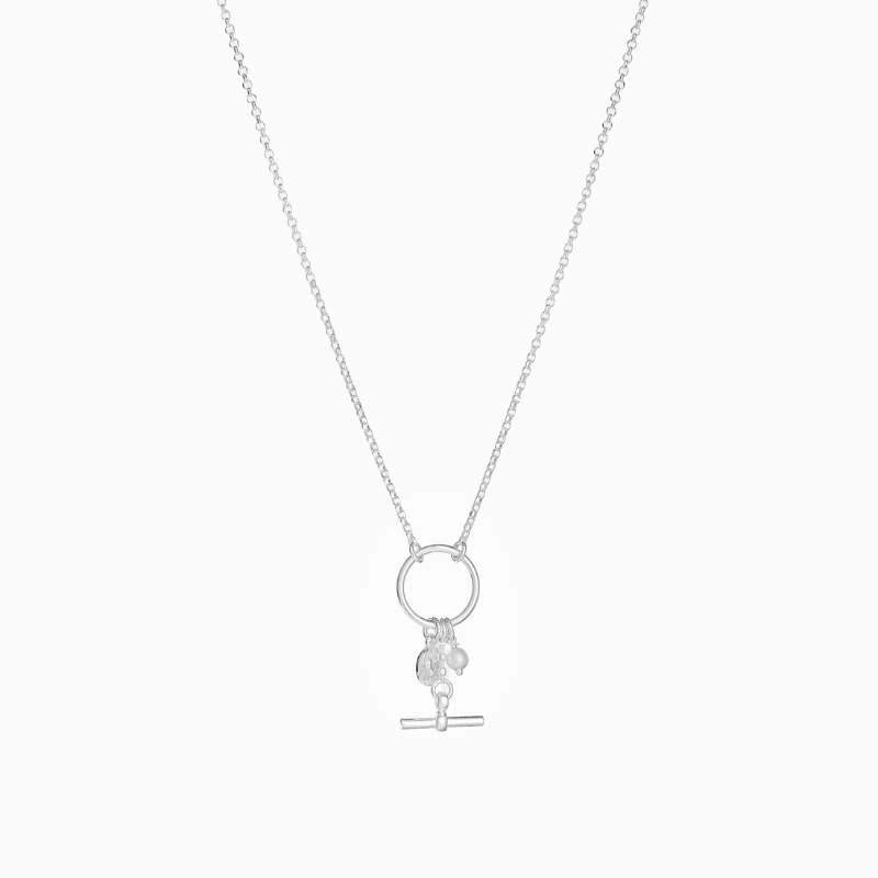 Collar de plata 925 con 3 charms al centro. Disponible en plata y plata bañado en oro amarillo.