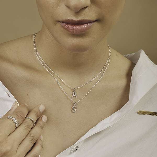 Collar con inicial de plata 925. Cadena de 45cm de largo y letra con circones.