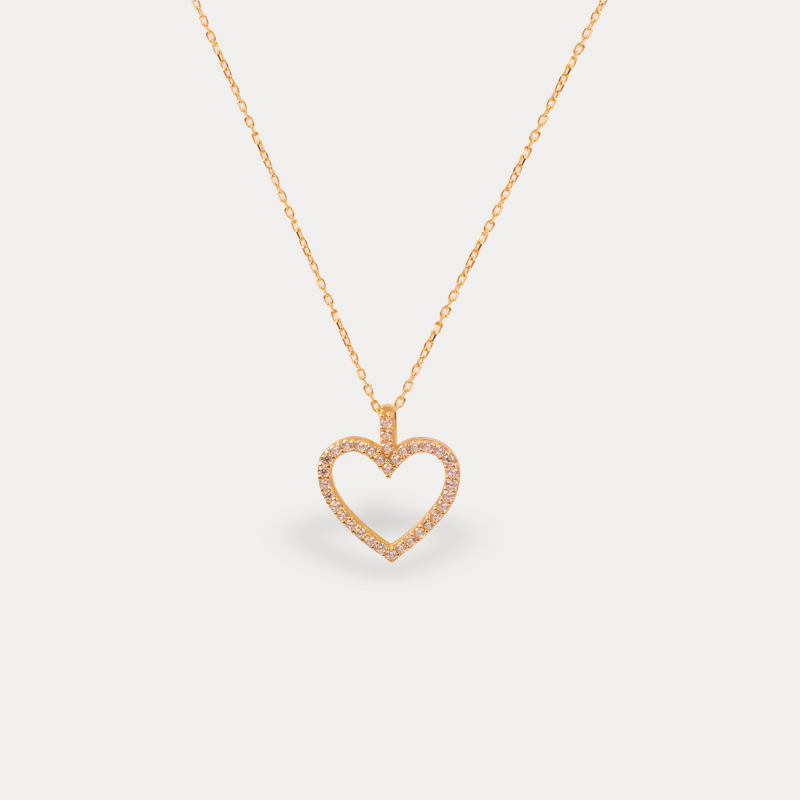 Collar con dije de corazón calado con zirconias. Medida: 45cm. Joyas de oro 18k en Adriajoyas.com