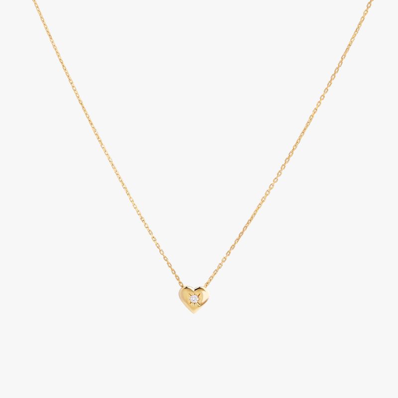 Collar de oro amarillo 18k modelo corazón con punto de diamante.