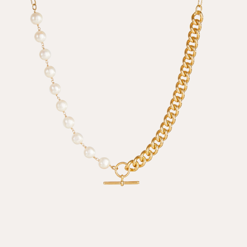 Collar de plata 925 mitad perlas y mitad cadena. Disponible en plata y plata bañado en oro amarillo.