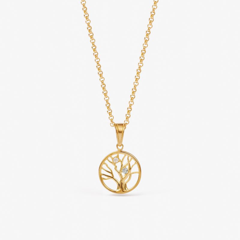 Collar de plata 925 con dije circular de árbol de la vida con zafiro blanco de 1.5mm y topacio celeste de 1.75mm.Disponible en plata y bañado en oro amarillo.