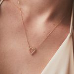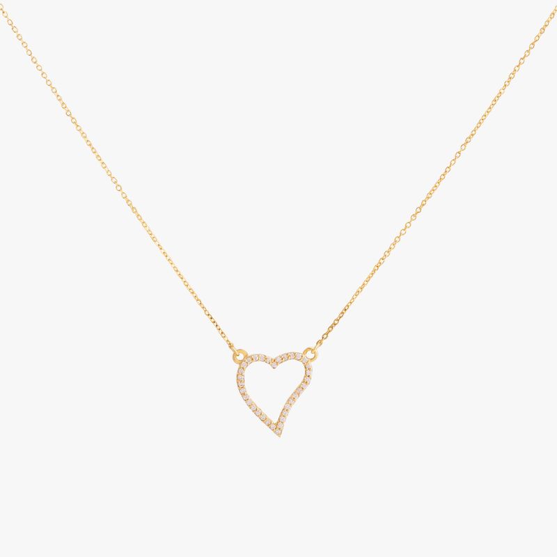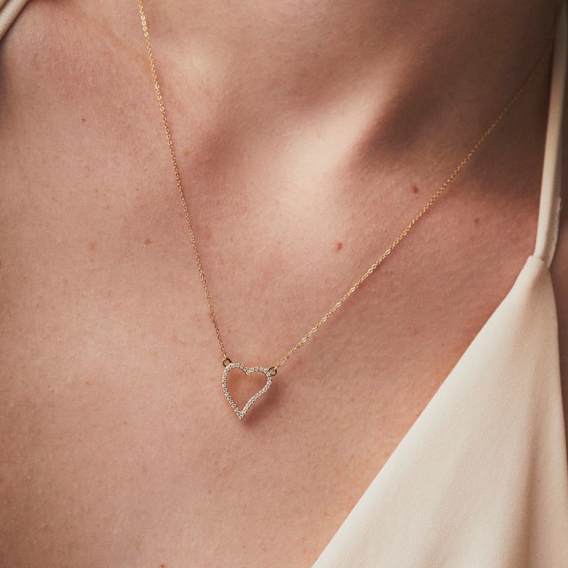 Collar de oro amarillo 18k modelo corazón con diamantes. Medida: 45cm.
