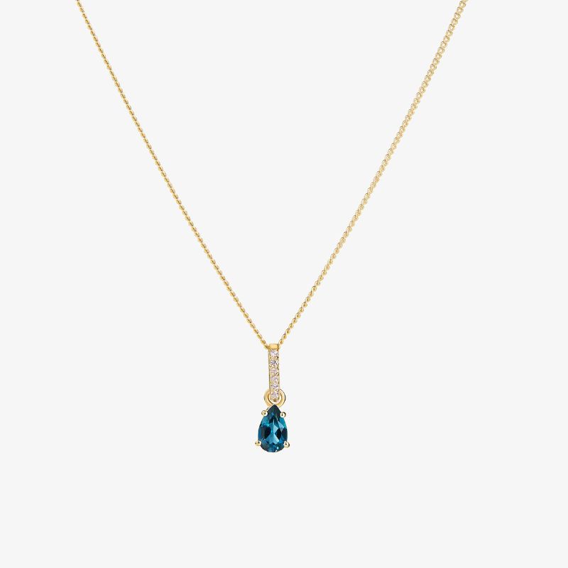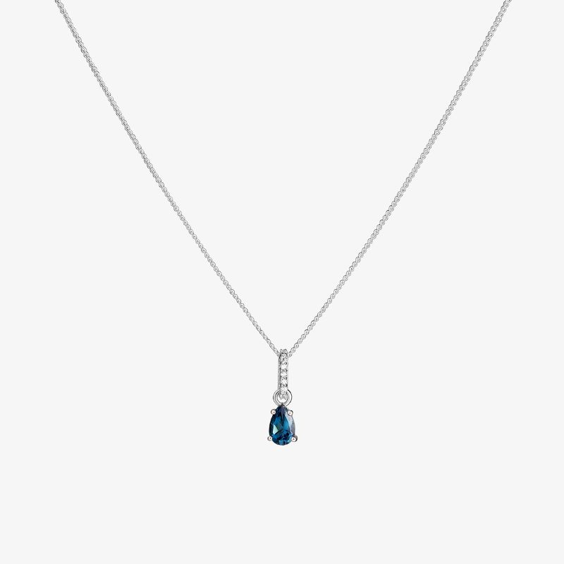 Collar de plata 925 de topacio azul forma de gota con topacio blanco.