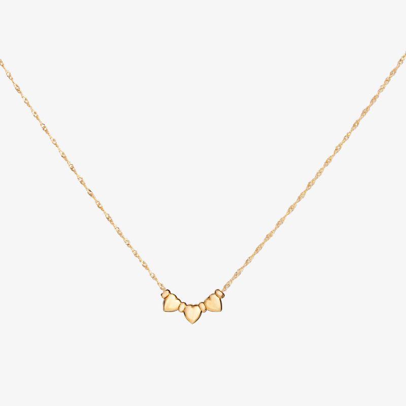 Collar de oro 18k modelo tres corazones con aros.Medida: 45cm.