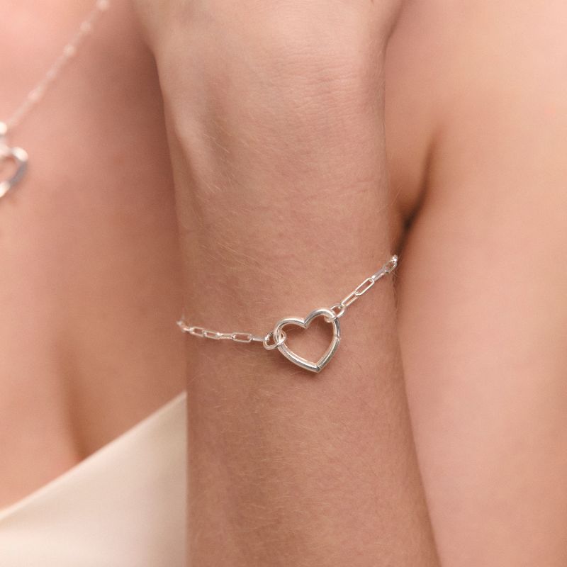 Pulsera de plata 925 modelo corazón calado. Disponible en plata y bañado en oro.16cm+ 3cm extensión.