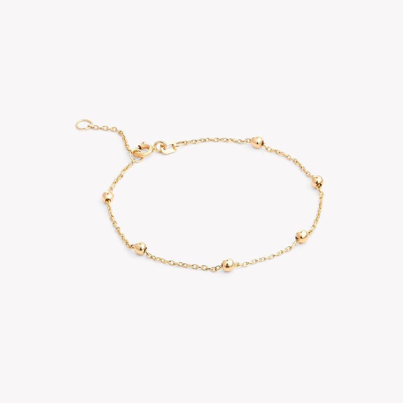 Pulsera de oro amarillo 18k modelo bolas. Largo 16cm y 2cm extensión.