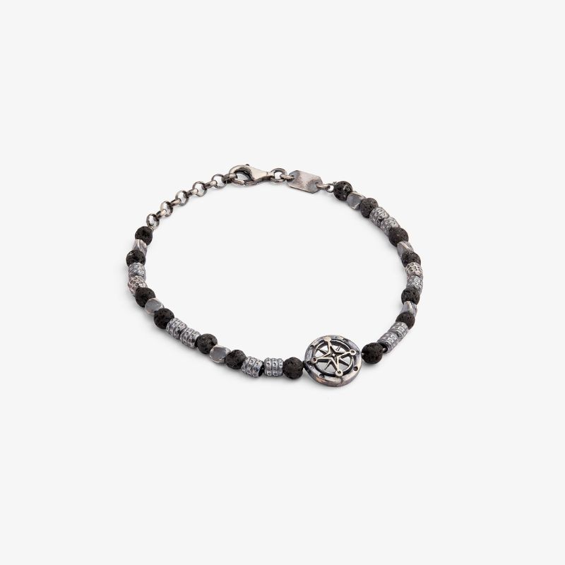 Pulsera de plata 925 modelo dije plata quemada con bolas de lava de volcán.
