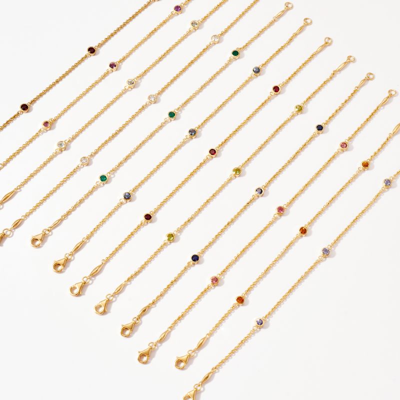 | Mes | Abril/Zafiroblanco, Agosto/Peridot, Diciembre/Tanzanita, Enero/Granate, Febrero/Amatista, Julio/Rubí, Junio/Alexandrita, Marzo/Aguamarina, Mayo/Esmeralda, Noviembre/Citrino, Octubre/Turmalinarosa, Setiembre/Zafiroazul |