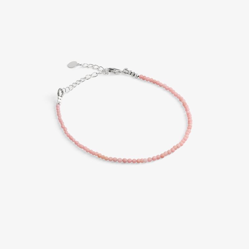 Pulsera de plata 925 con opalo rosado. Largo: 18cm+ 5cm extension