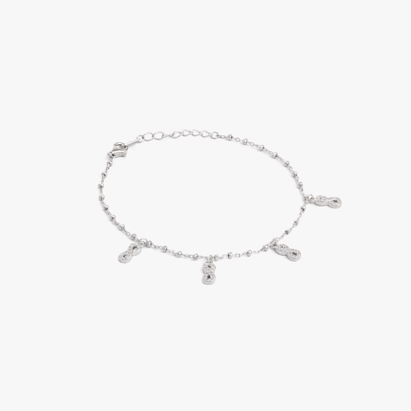Pulsera de plata 925 con 4 dijes de infinito con zircon. Disponible en plata y plata bañado en oro amarillo. Shop online en adriajoyas.com
