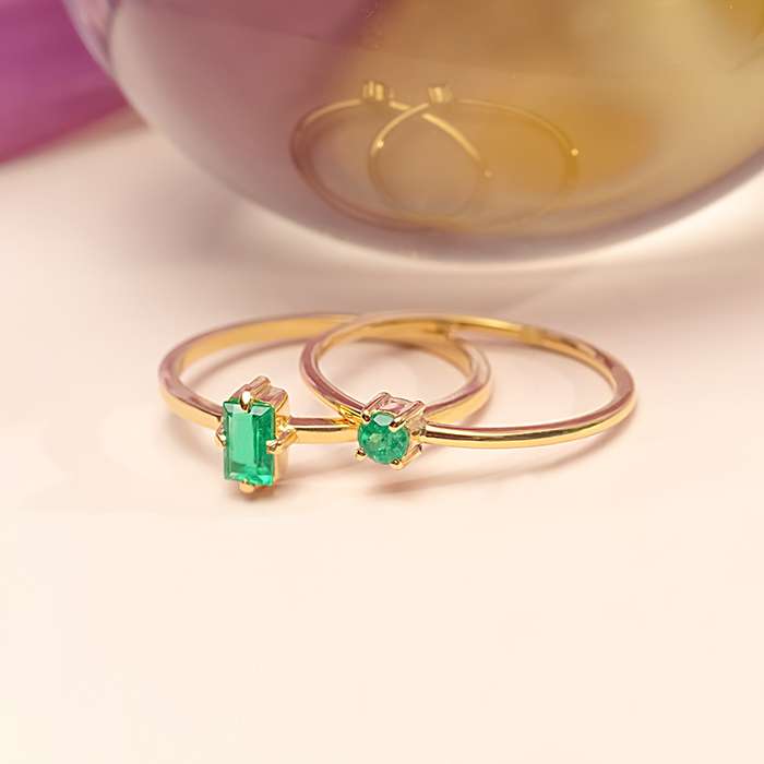 Anillo de oro 18k con esmeralda en forma circular de 2.25mm. Esta piedra preciosa representa abundancia y calma. Pieza a pedido 5 días hábiles.