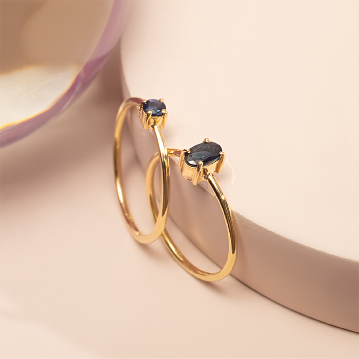 Anillo de oro 18k con zafiro en forma circular de 2.25mm. Este anillo representa la sabiduría y el éxito. Pieza a pedido. 5 días hábiles.